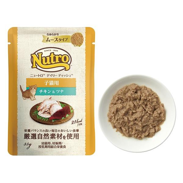 子猫の小さい顎と口に配慮した食べやすい滑らかなムースタイプ。