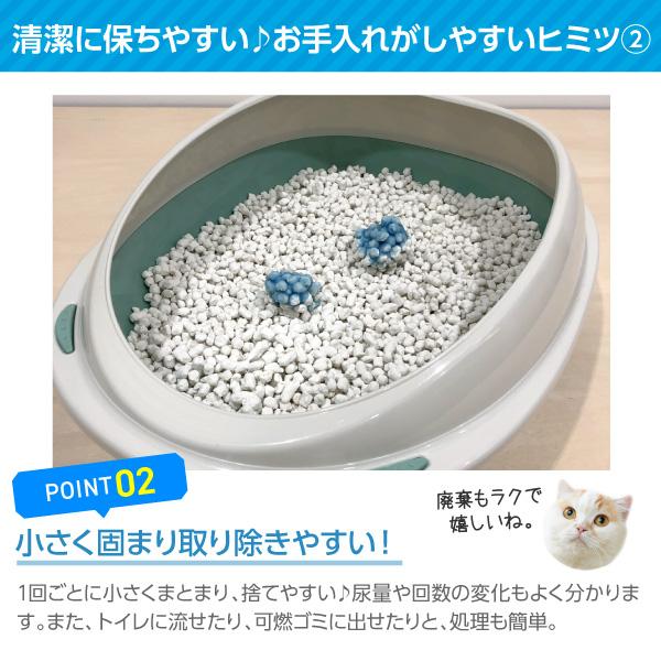 高吸収性ポリマーと良質なパルプで、尿はもちろん、においもしっかり吸収する紙製の猫砂。